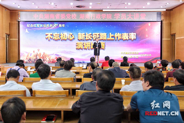 此次演讲比赛既是湖南省委党校纪念长征八十周年的一项重要活动,也是讴歌中国共产党为实现中华民族伟大复兴中国梦的奋斗历程和光辉业绩的平台,还是落实习近平总书记“七一讲话”精神的重要举措。