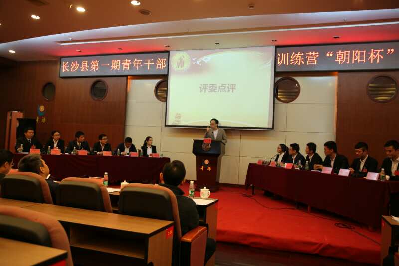 “长沙县青年干部训练营”是长沙县委青年干部成长三年行动计划的一项具体举措,计划对全县500余名30岁以下青年干部分期分批进行轮训,训练内容除课堂培训外,还有封闭式军事训练、读书分享、社会实践、志愿服务等。本次“朝阳杯”辩论赛就是青训营的重要活动之一。青训营的所有活动均利用晚上及周末时间进行,此次辩论赛整个赛程两个阶段的比赛均压缩在不到一个星期的时间内完成。初赛阶段,由我会副会长周萍萍、辩论委主任万丹、辩论委副主任刘潇三位老师出任专业评委,除了担当比赛现场点评工作,还在决赛选手选拔、决赛组织方案及决赛辩手培训方面提供了指导建议。