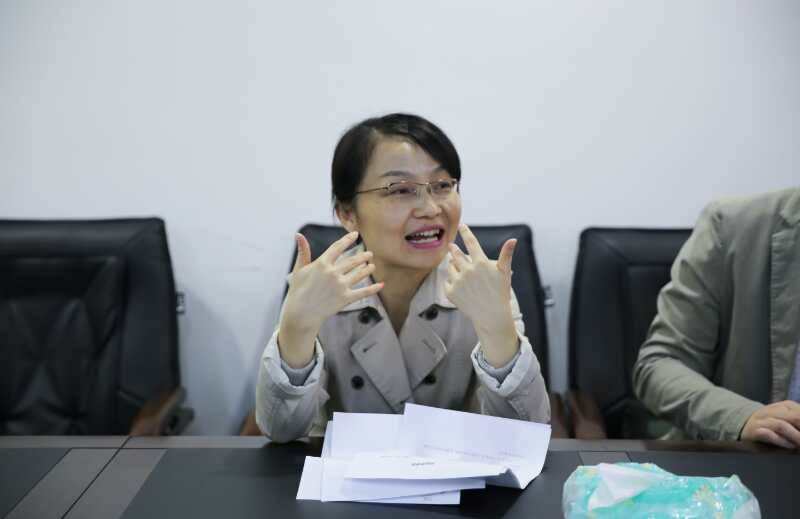 本会副会长周萍萍老师在初赛后同辩手交流