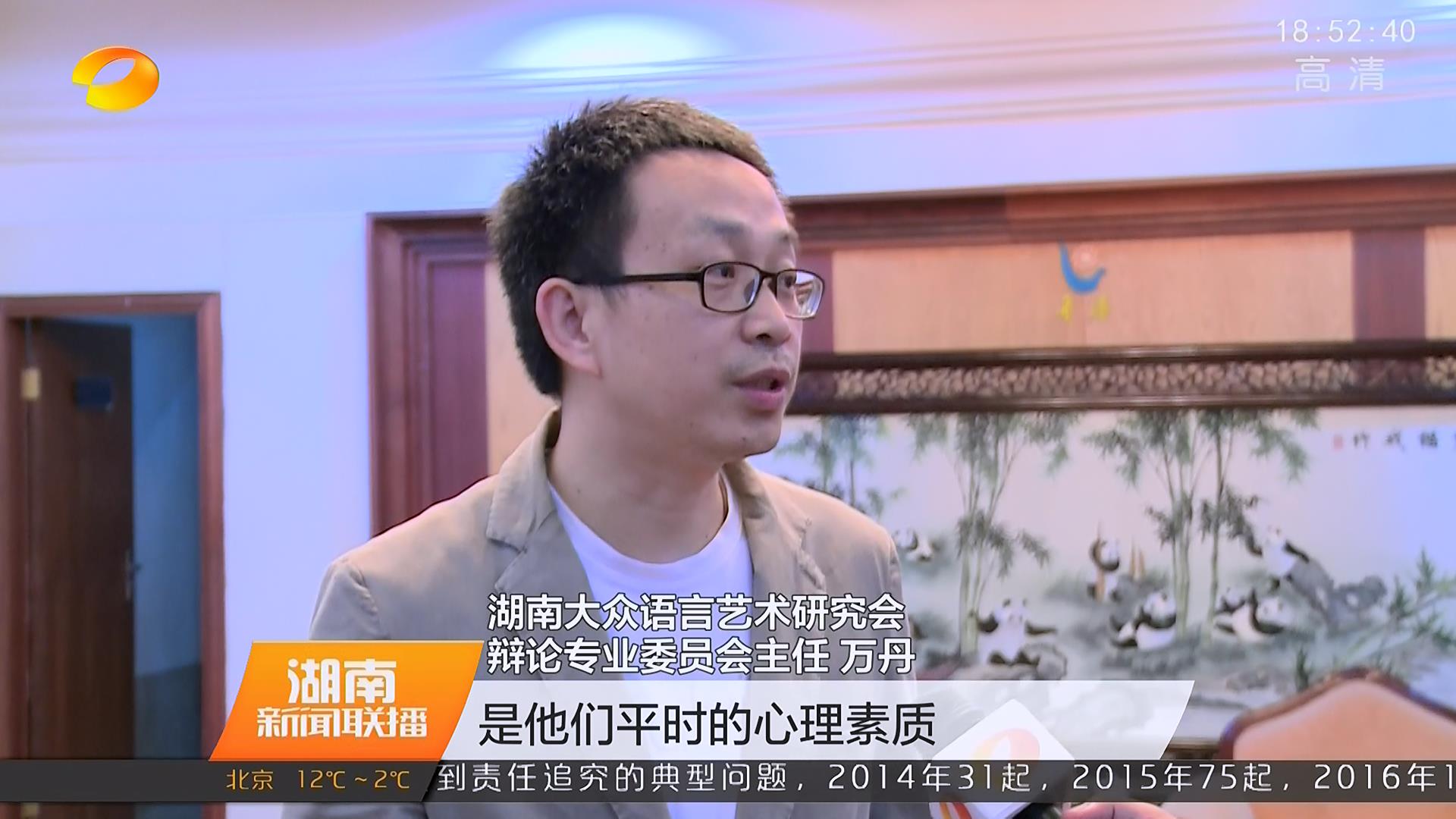 本会辩论委主任万丹老师接受湖南卫视新闻联播记者采访