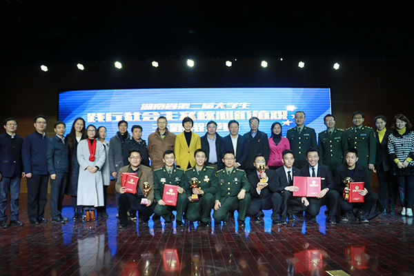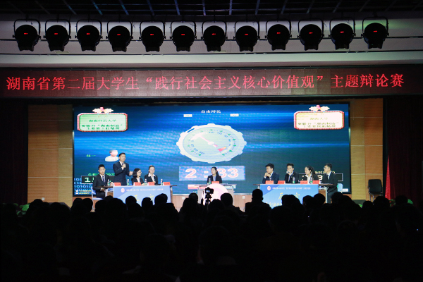 (通讯员 施凡凡 高惠娟 易冰 王梓)12月10日、11日下午,由团省委、省学联主办,我校社会主义核心价值观研究院和校团委共同承办的湖南省第二届大学生“践行社会主义核心价值观”主题辩论赛第二阶段比赛在励德楼学生活动中心隆重举行。在此次比赛中,我校团委获优秀组织奖;湖南大学、国防科学技术大学分获冠、亚军,我校和湘潭大学获季军。我校万丹老师、钟晔同学分获优秀指导老师奖和优秀辩手奖。