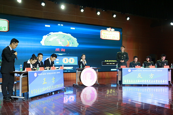 10日下午,由我校对阵湖南大学,国防科学技术大学对阵湘潭大学的半决赛,就“要提升湖南制造,主要靠工匠精神/创新精神”展开辩论。11日下午,湖南大学和国防科学技术大学角逐冠军,围绕“培育社会主义核心价值观应更注重政府引导/社会牵引”,正反双方针锋相对,妙语联珠,赢得了在场评委和观众的阵阵掌声。