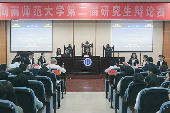2017年4月18日晚,湖南师范大学第二届研究生辩论赛决赛暨颁奖典礼在校景德楼模拟法庭举行。湖南师范大学辩论队教练万丹老师、中南大学研究生辩论队教练黄曦老师,湖南大学研究生辩论队教练邹昶老师等我会辩论委专家担任评委。