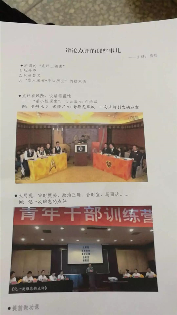 额,这也是韩老师的教学素材,通过播放电影《卡特教练》中的一些桥段,来阐述辩论队教练的各种手段。精彩的讲述引人入胜,导致大家差点误了饭点。