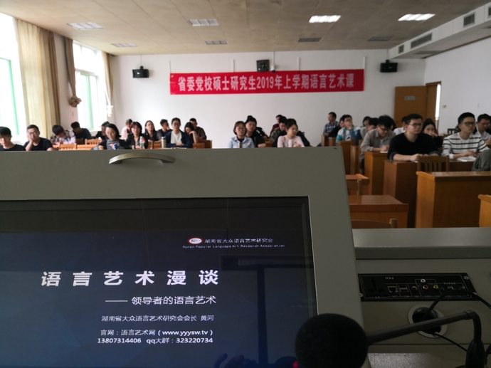 2019年7月11日下午,省委党校硕士研究生语言艺术课于教学大楼15教室圆满结束。在湖南省大众语言艺术研究会会长黄河老师的带领下,几名专家级老师为同学们带来了一场场语言文化的盛宴,极大的提高了同学们的语言鉴赏能力和语言驾驭水平。据悉,这是湖南省大众语言艺术研究会成立以来,其核心团队第三次来校开讲。