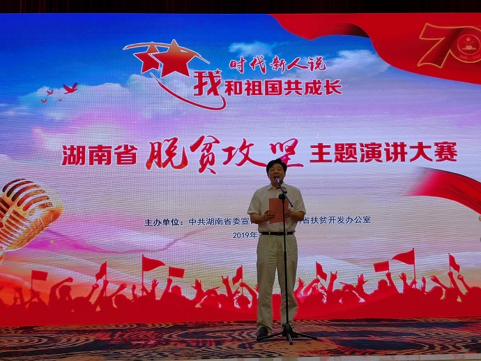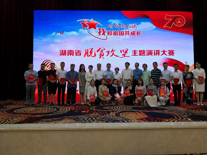 湖南日报7月25日讯(记者 陈薇)今天,由省委宣传部、省扶贫办共同主办的庆祝中华人民共和国成立70周年湖南省“时代新人说——我和祖国共成长”脱贫攻坚主题演讲大赛在长沙举行,全省14个市州和省直有关单位共选送的31名选手参赛。