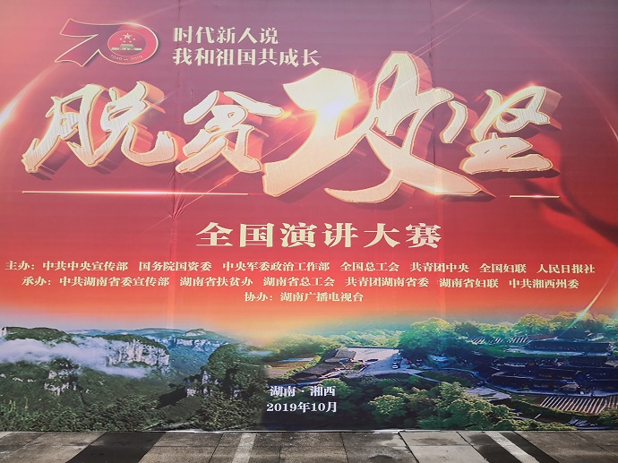 16日全天、17日(国家扶贫日)上午,湖南省湘西土家族苗族自治州武陵山大剧院里座无虚席,“时代新人说——我和祖国共成长”演讲大赛“脱贫攻坚”主题演讲比赛在这里举行,参赛选手逐一登台展示风采。