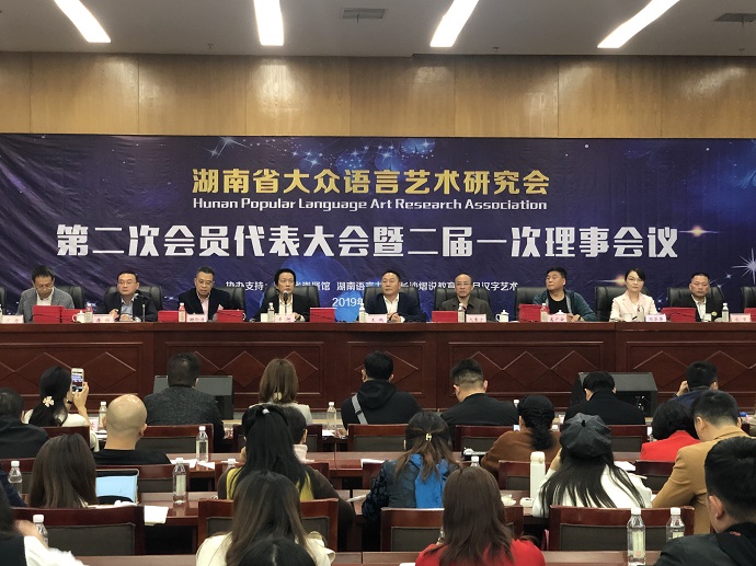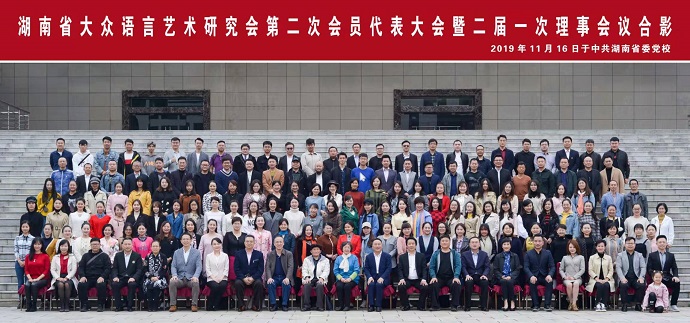 2019年11月16日,湖南省大众语言艺术研究会第二次会员代表大会暨二届一次理事会议在湖南省委党校召开。来自全省各机构的代表近200人参加了会议。上海市朗诵协会等十多家省级语言艺术类社会组织向大会发来了贺信(全文附后)或视频。