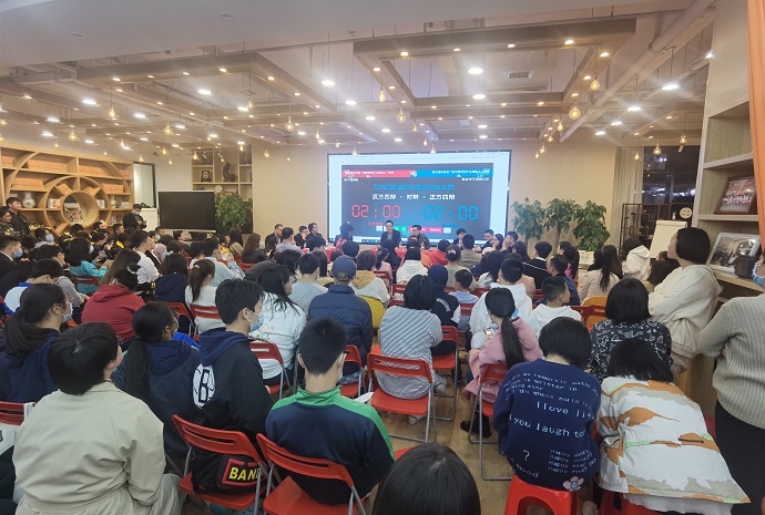 本次老友赛聚焦当前社会热点话题,3支队伍、12位辩手围绕“如果有个按钮能看到伴侣有多爱你,我要不要按?”、“躺平是这个时代焦虑的解药还是毒药?”、“对于青年来说,‘我想成为什么样的人’与‘我不想成为什么样的人’谁更重要?”三道辩题展开辩论交流。辩论现场,在湖南省大众语言艺术研究会副会长、湖南师范大学辩论队总教练万丹教授与辩论委秘书长李磊的主持下,对阵双方在立论环节侃侃而谈而又不失风度,攻辩环节针针见血,你攻我打,自由辩论阶段双方唇枪舌战,你来我往,观点与思想的交锋掀起了现场观众的阵阵掌声。最后的交流互动环节,现场观众由辩题衍生出新的话题,通过提问与选手们进行了畅谈,全场气氛进入高潮。